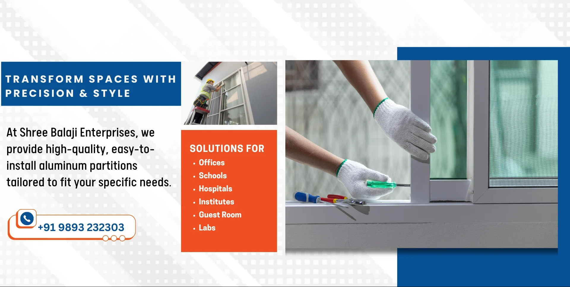 Established in 2023 in Indore, Shree Balaji Enterprises specializes in providing a wide range of aluminium and glass fabrication solutions. Our services include the installation and fabrication of aluminium doors, windows, office cabins, partitions, ACP (Aluminium Composite Panel) works, glazing, PVC doors, and other aluminium fabrication work. We cater to both residential and commercial needs, offering precision-engineered products known for their durability, rust resistance, dimensional accuracy, and customized designs.